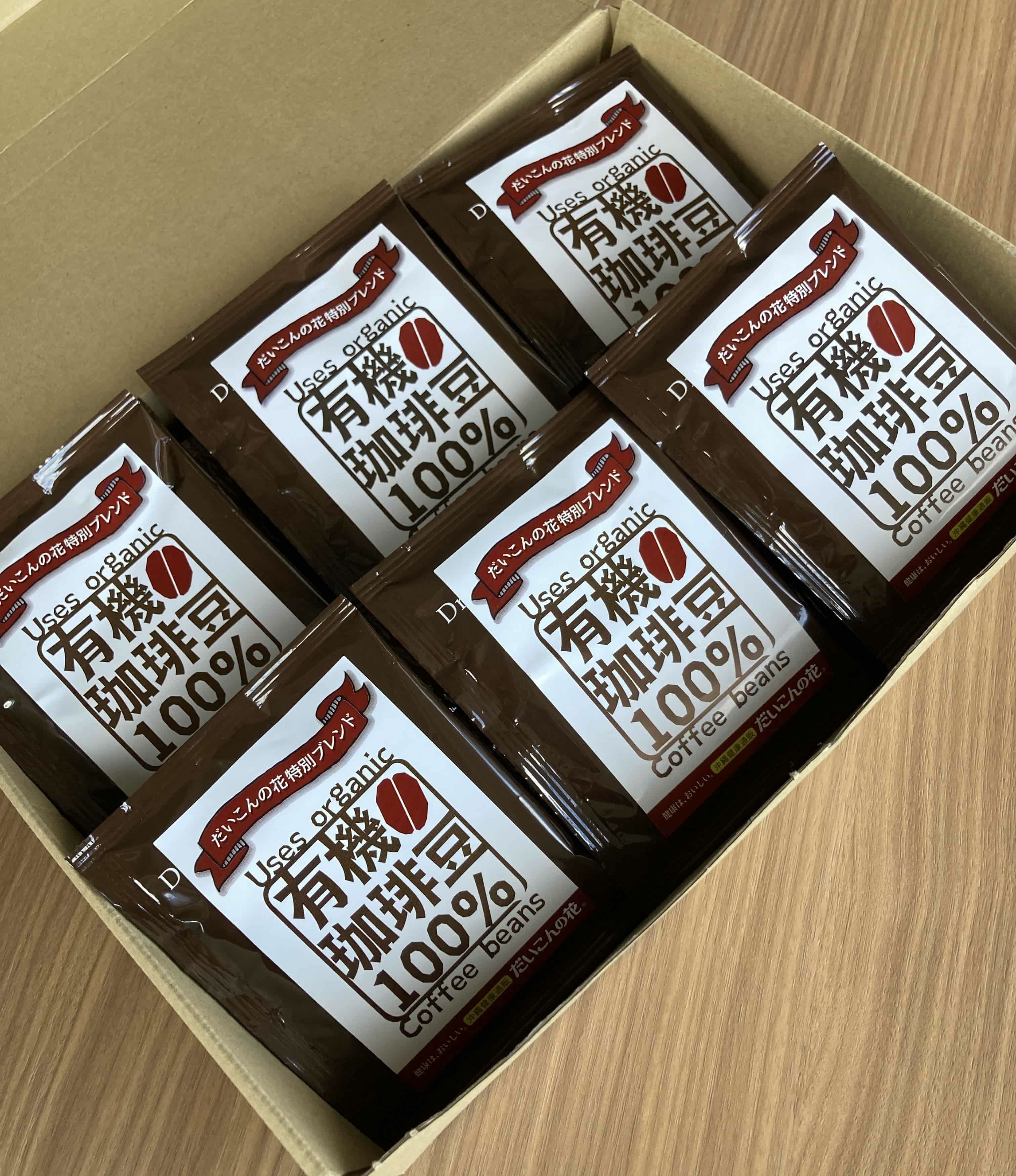 あの!「だいこんの花」実店舗にて大人気のオリジナルブレンドが復活!ご自宅でお楽しみ頂けます♪お手軽なドリップタイプです。 実店舗で提供していたコーヒーをより香り豊かな配合にし美味しく仕上げた完全オリジナルブレンドコーヒーです。 甘く香ばしい香りと共に“健康食彩レストランだいこんの花”を思い出してください。 《原産国》コロンビア・メキシコ・ペルー甘い香りとしっかりした酸味とコク、風味のバランスが良いコーヒー